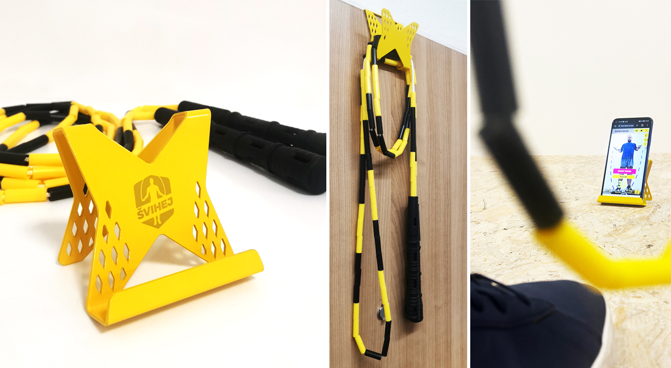 Šviháček je malý, ale chytrý doplněk pro všechny náruživé uživatele švihadel, ideálně od firmy Švihej.cz. Přímo pro ně jsme navrhli tento multifunkční produkt. Funguje jako háček na švihadlo a při otočení jako stojan na telefon. Hlavní úlohou háčku je, aby jste měli švihadlo stále na očích a nezapomínali skákat. Proto si jej můžete pověsit na dveře nebo dvířka nábytku, kolem kterých často chodíte. Po otočení háčku o 180° funguje jako stojánek na telefon. Stojan na telefon je hlavně platný ve spojení s aplikací Švihej portál, kde je i počítadlo skoků nebo tréning fungující při snímání člověka přední kamerou telefonu. Šviháček je vyroben ze silného plechu, aby přežil cesty v batohu a případné skákací nehody.